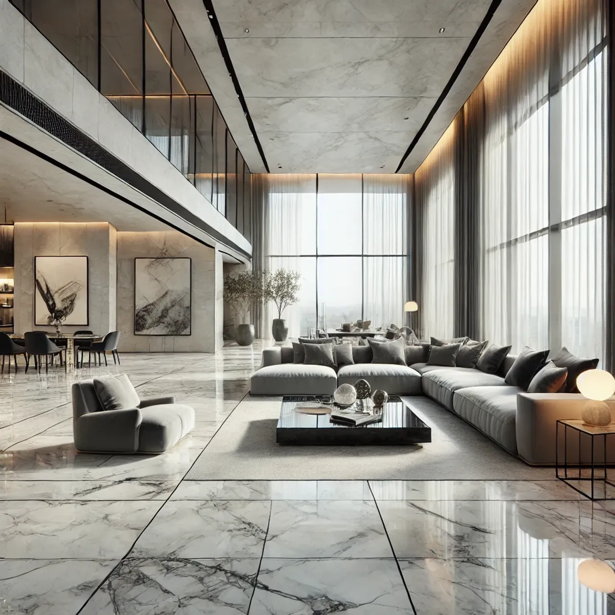 XXL-Fliesen reduzieren die Anzahl der Fugen, was zu einem eleganten und durchgängigen Erscheinungsbild führt.